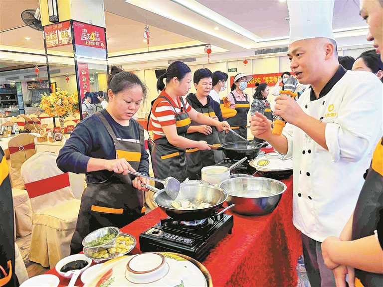 龙华新闻讯(记者 宋彪 通讯员 陈婉婷/文 记者 陈建华/图)11月3日-4日,观湖街道公共服务办(劳动)在宝荣酒楼开展两场以热爱烹饪的家庭成员为主题的“粤菜师傅”公益职业技能培训,共60人每场30名家庭烹饪爱好者齐聚一堂。
