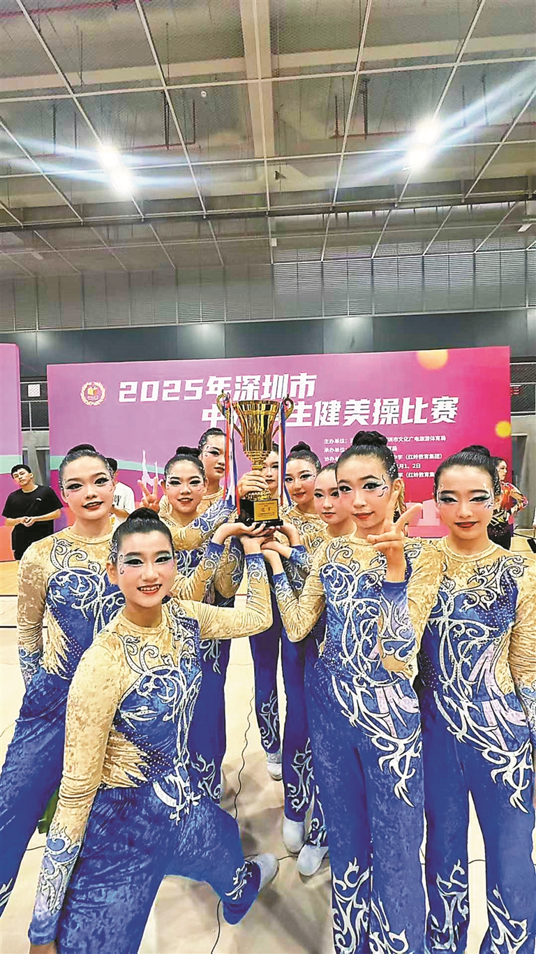 ▲龙华教科院第二附属学校健美操队蝉联市赛冠军。