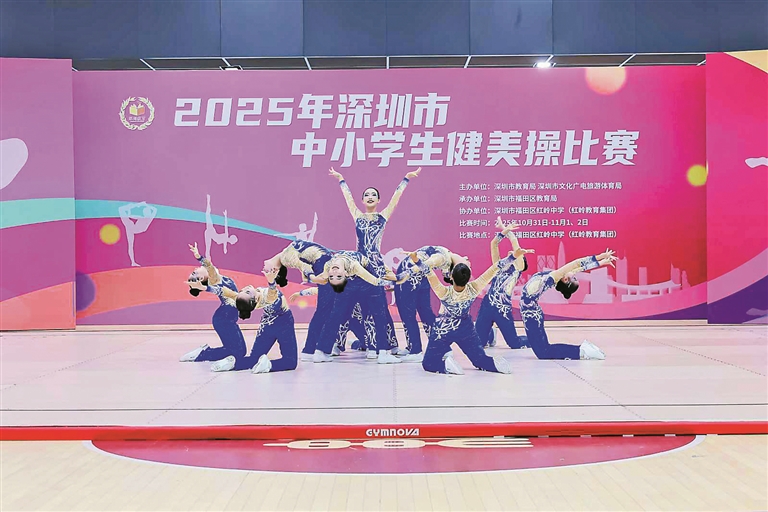 龙华新闻讯(记者 张瑜 通讯员 杨媛媛 文/图)日前,由深圳市教育局、深圳市文化广电旅游体育局联合主办的2025年深圳市中小学生健美操比赛圆满落幕。深圳市龙华区教育科学研究院第二附属学校(简称“第二附属学校”)健美操队凭借精湛技艺与默契配合,在全市众多参赛队伍中脱颖而出,斩获广东省校园健美操系列推广套路(初中组)第一名,指导教师陈炫好、刘雨婷获评“深圳市优秀教练员”,续写该校素质教育的亮眼答卷。