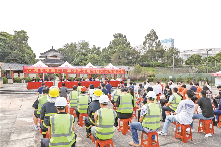 深圳市电动自行车停放充电场所火灾防控试验在大浪市民公园开展。