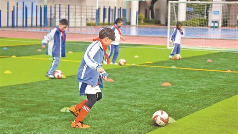 民治中学教育集团的孩子们在足球训练中。