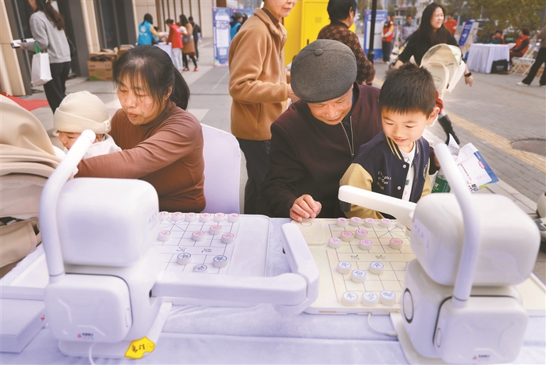 ▲居民与下棋机器人对弈。